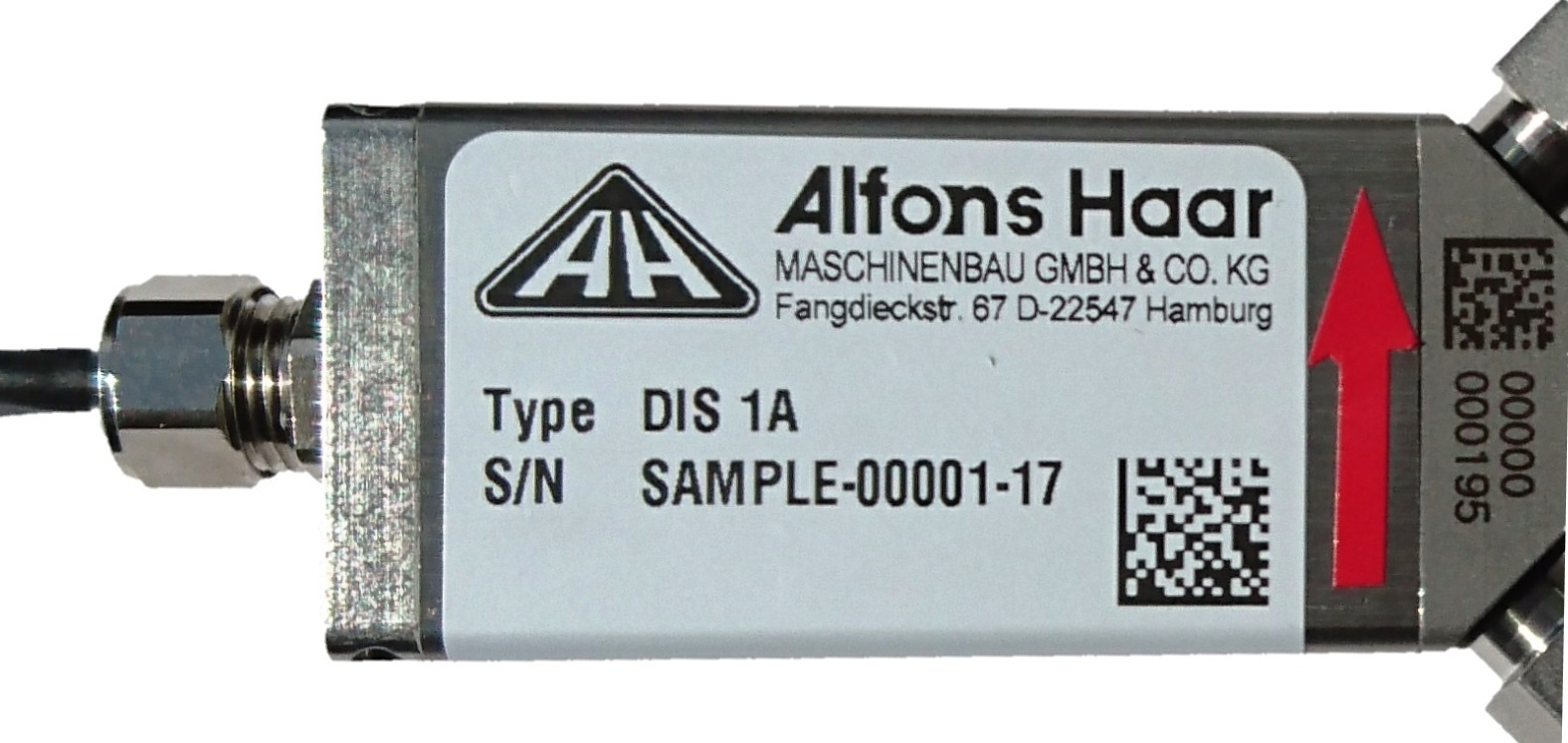 De sensor DIS 1A wordt rechtstreeks op het meetgedeelte gemonteerd als aanvullende oplossing voor het anders niet-bewegende/niet-vibrerende kerndebiet meetelement van het PreciGAS-systeem.